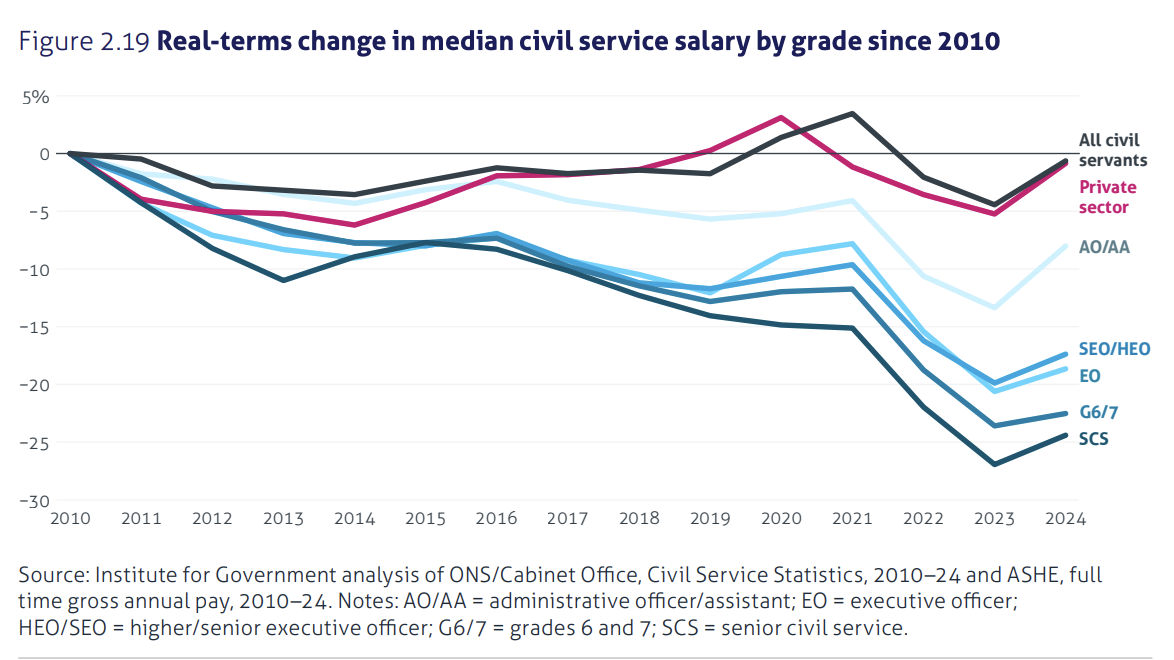 The rest of this note looks at pay across the whole of the civil service. Follow this link for a more detailed discussion of the pay of the Senior Civil Service.